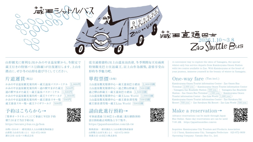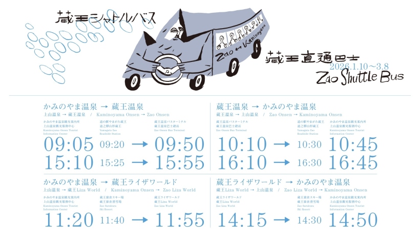 上山市観光物産協会では、2026年1月10日~3月8日まで今年も蔵王シャトルバスの運行を決定し、販売を開始いたしました。